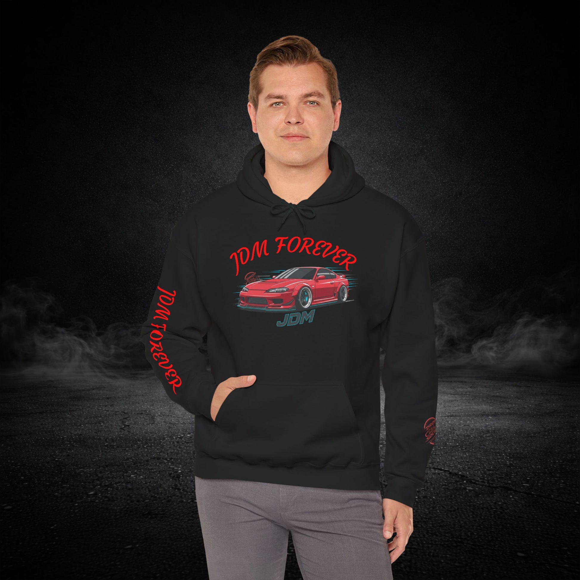 JDM Forever Hoodie — Red Sports Car Graphic Streetwear