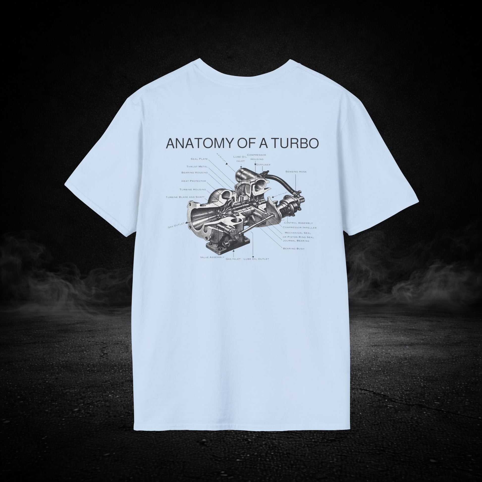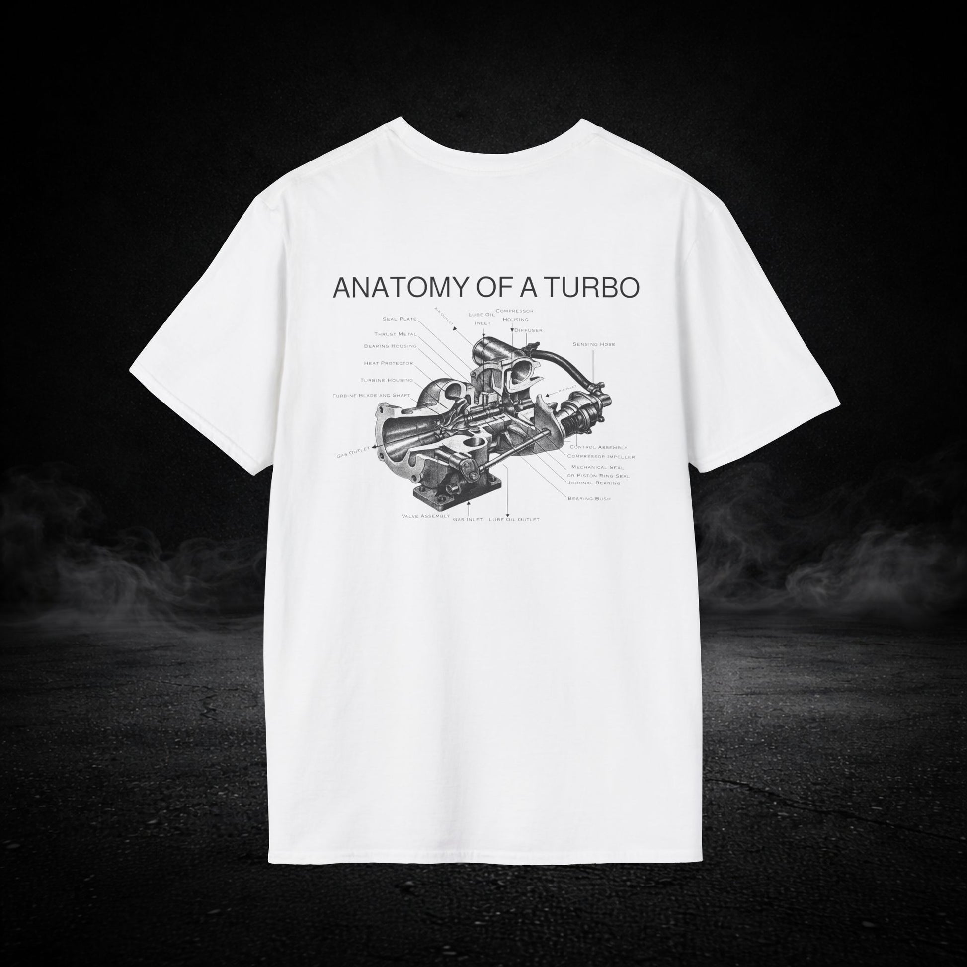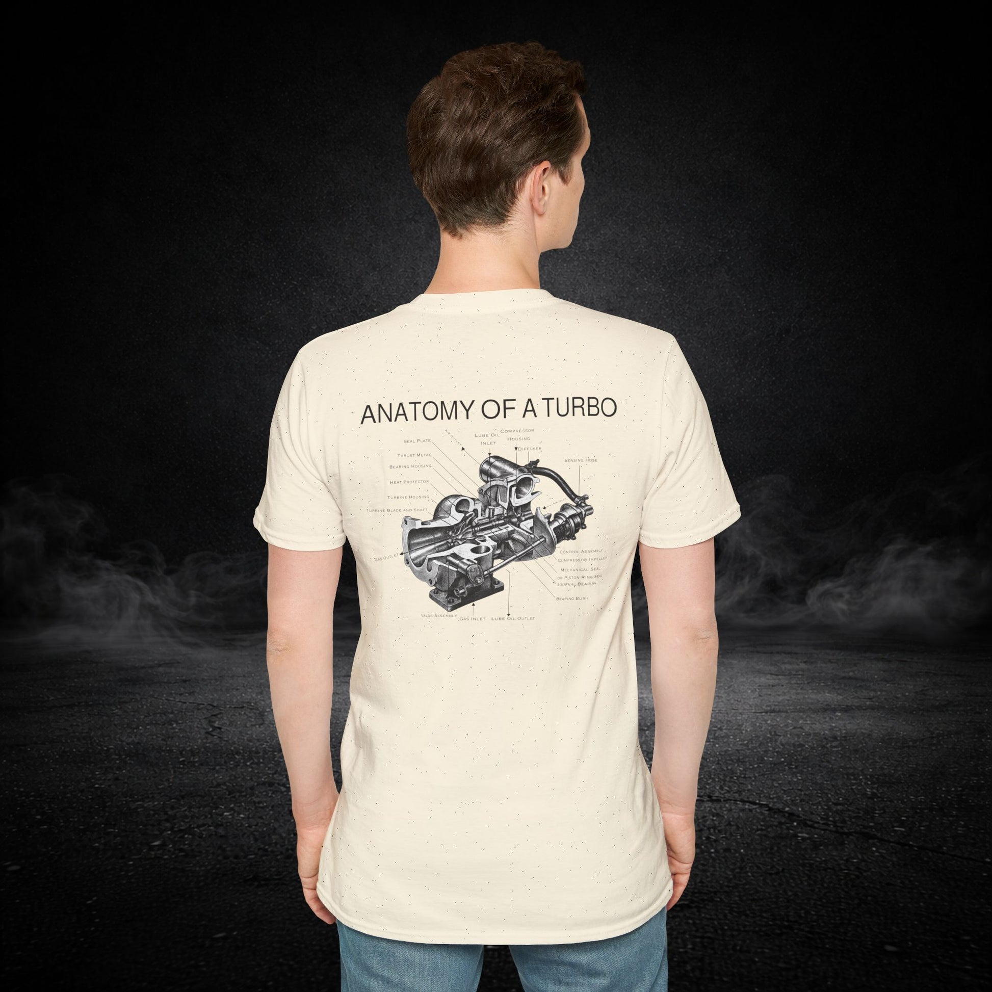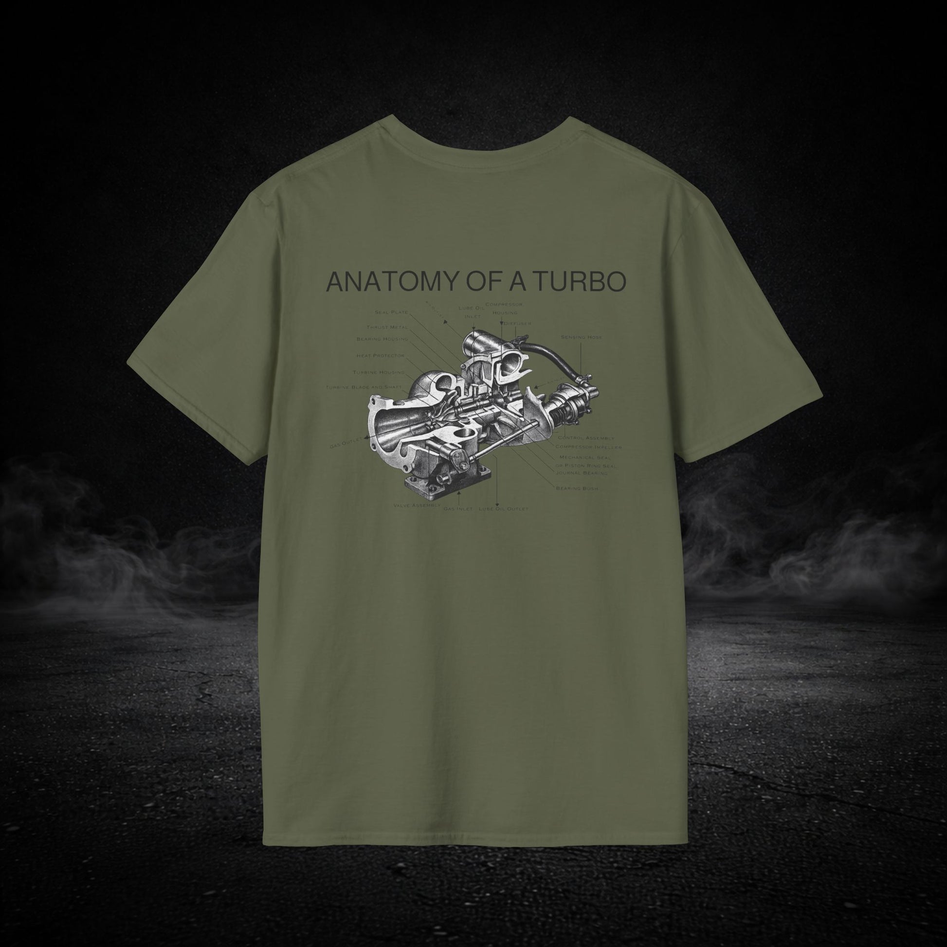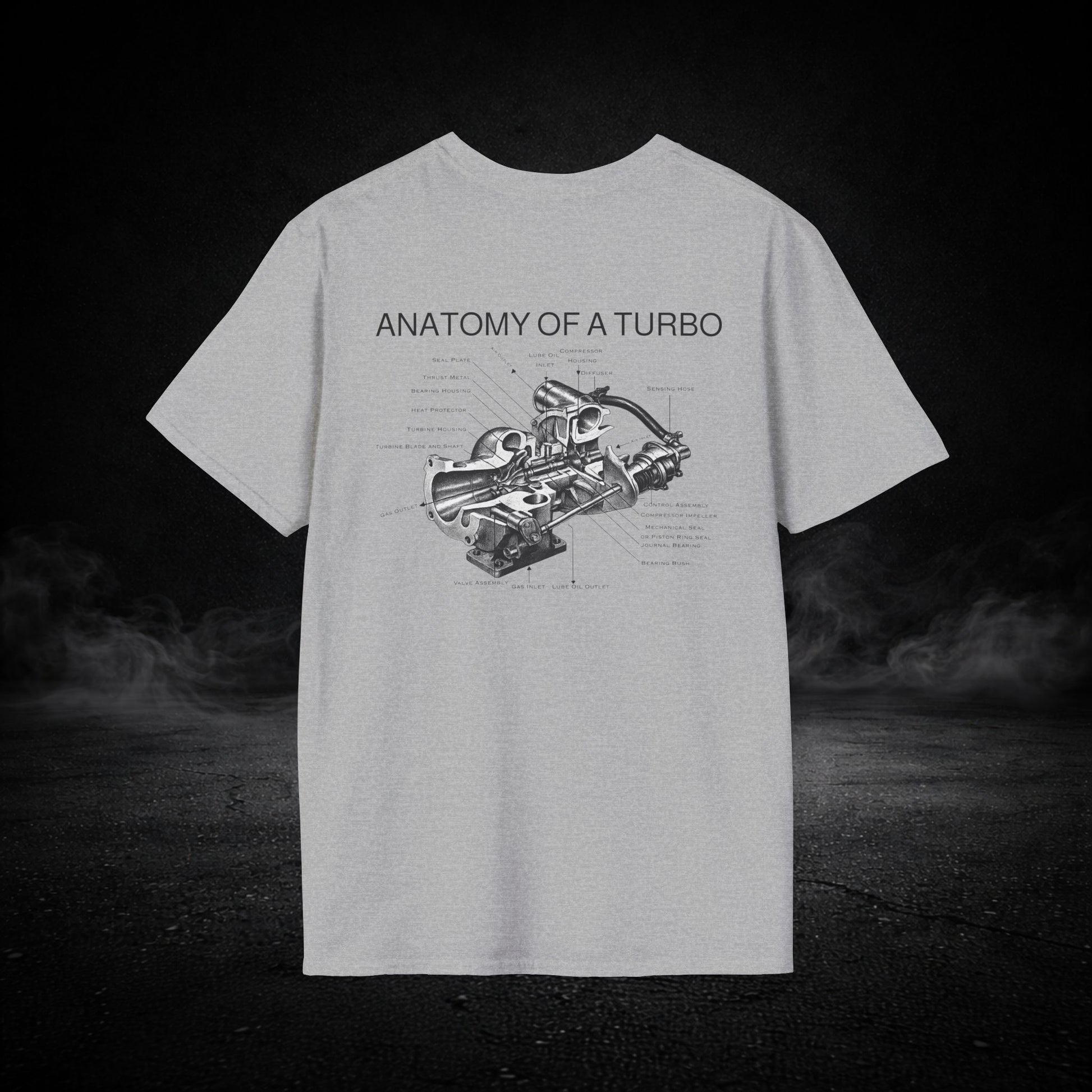 A lightweight crew-neck tee that speaks to anyone who lives for boost, not just idle chatter. The front wears subtle badges of turbo culture—small, technical emblems over the heart and chest—while the back unfolds a detailed, hand-drawn diagram labeled “ANATOMY OF A TURBO.” It feels like stepping into the garage on a quiet morning: grease-scented air, sunlight slicing across metal, and the focused calm of someone tracing components with purpose. This shirt slips easily into a wrench-worn wardrobe or a track-day lineup. Wear it to wrench nights, car meets, or while sketching mods at the kitchen table. The look is honest and technical—made to start conversations with fellow gearheads and to sit comfortably under a jacket or on its own during warm laps around town.